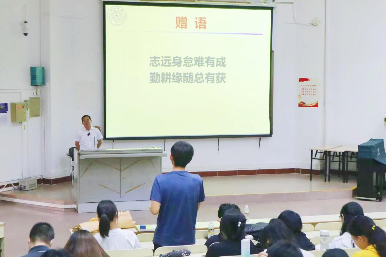 孟安明院士结合自身求学与科研经历,以“七大成功的要素”来告诫海大学子:1.是要有足够的信念,坚信天生我材必有用;2.有自己的理想与梦想,并朝着这个方向不懈努力;3.成功需要机遇与决断,最重要的不是如何选择,而是选择后的态度;4.无论做什么事,勤奋都是关键,要相信勤能补拙;5.要有自己的思想,要辩证性思考问题,对凡事保持一个怀疑的态度,多问几个为什么;6.要不断学习,并将学习践行于人的一生中。特别是在大学阶段,同学们要培养学习的能力,保持强烈的求知欲;7.要学会坚持,无论遇到什么困难,都不要轻易放弃,这也是未来从事科研之路的关键所在。