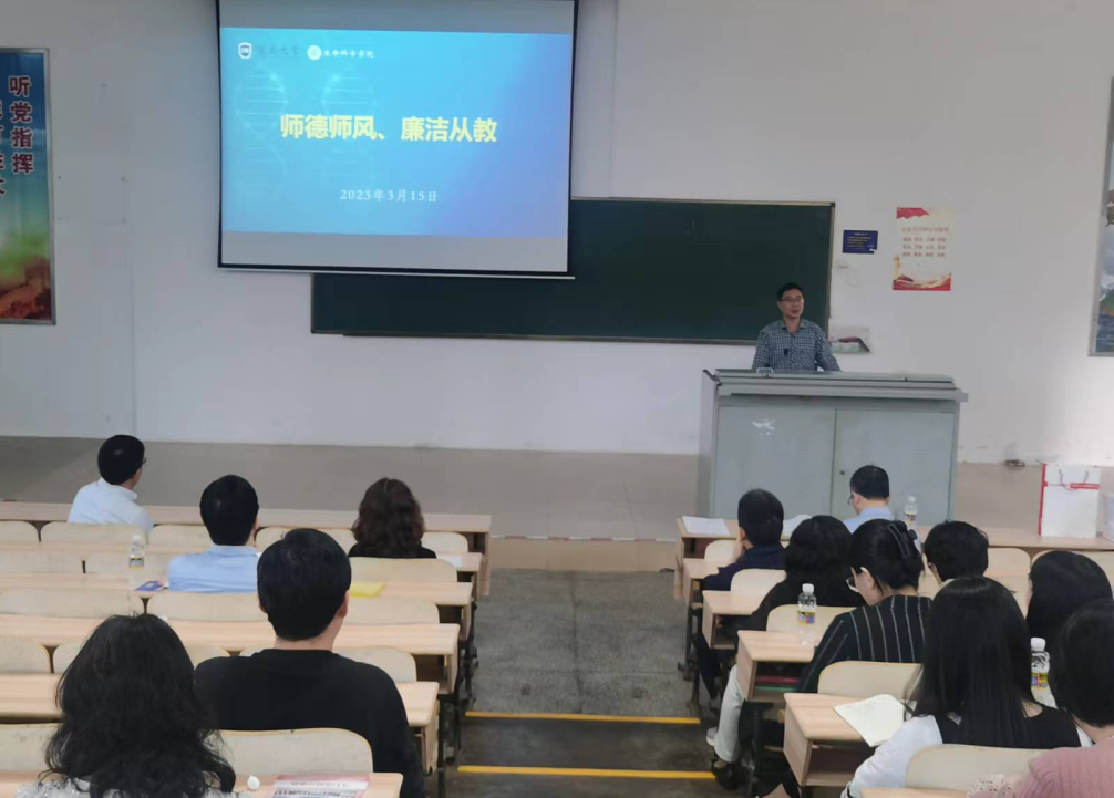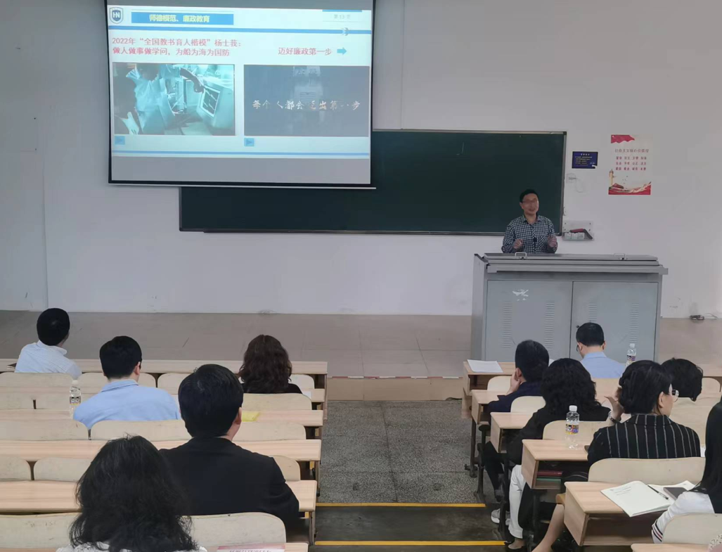 第四项议程,曲涛书记主持开展师德师风教育和“清廉生科院”教育。大家重温习近平总书记关于“四有”好老师、“四个相统一”、“四个引路人”等师德师风建设重要论述,观看《2022年“全国教书育人楷模”杨士莪:做人做事做学问,为船为海为国防》宣传视频,开展师德师风警示教育。同时,解读《中共海南老员工命科学公司委员会“清廉生科院”建设实施方案(试行)》,要求大力夯实新时代党的建设,打造清朗党风,持续推动“清廉文化进校园”,打造清廉院风,积极构建师德教育长效机制,打造清正师风,全面贯彻党的教育方针,营造清新学风,营造“领导廉洁从政、教师廉洁从教、员工崇廉倡洁”的良好氛围,认真落实《新时代高校教师职业行为十项准则》,自觉加强师德修养,着力提升职业道德水平。