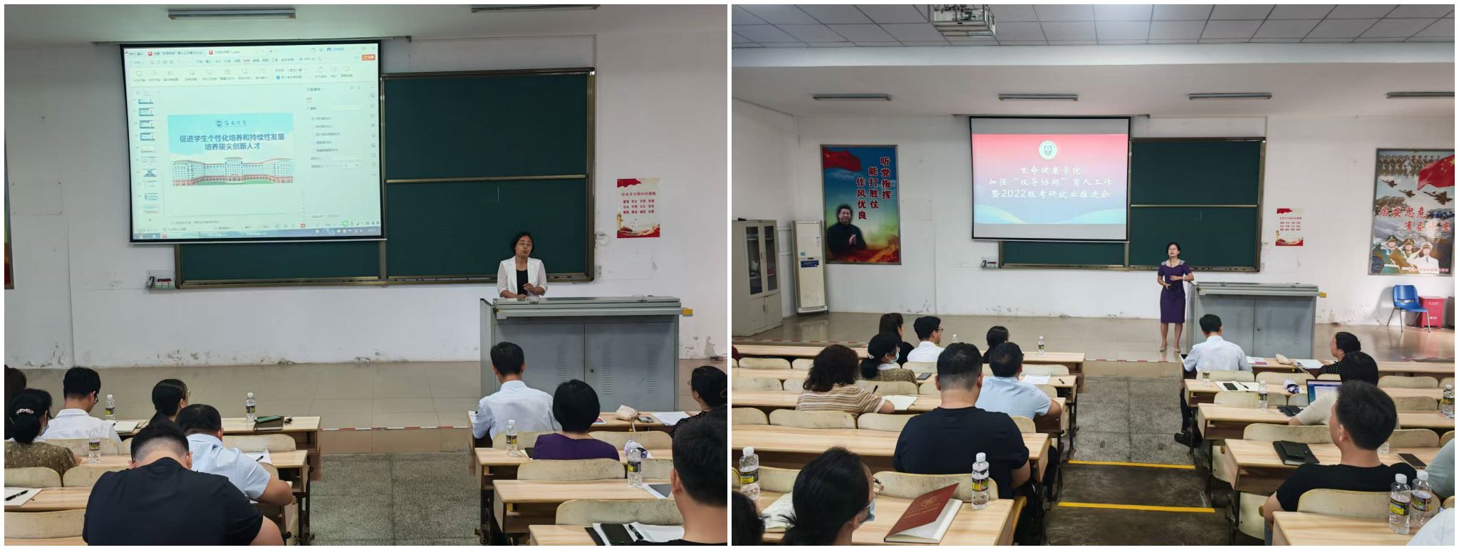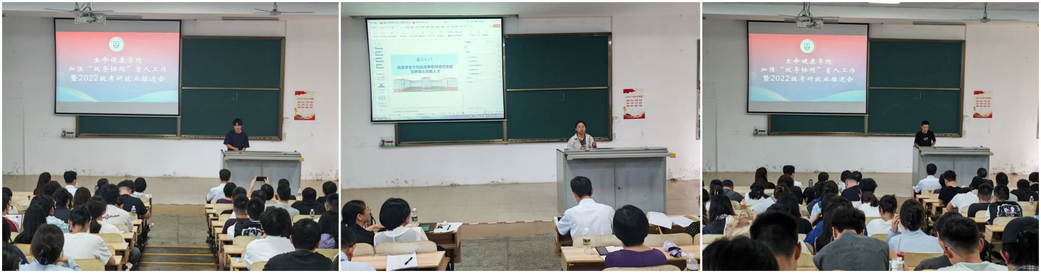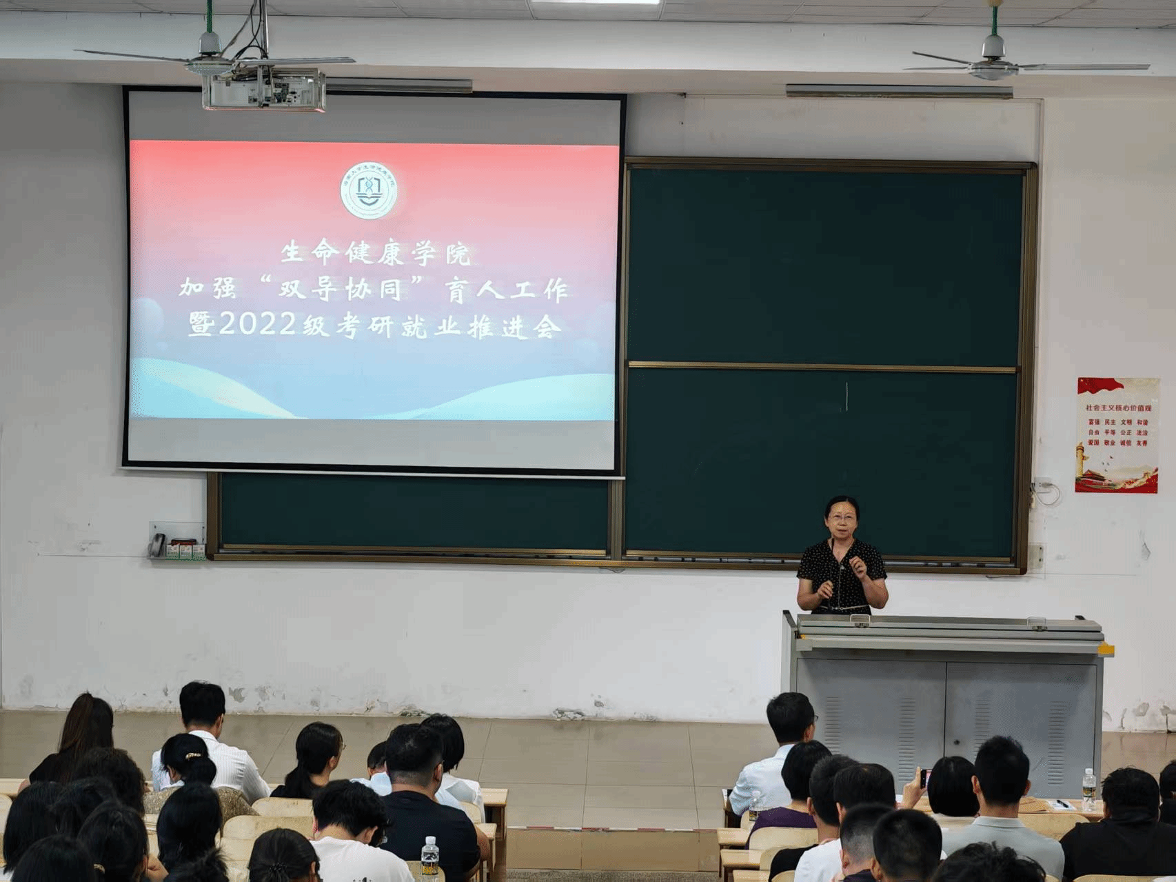 2025年5月30日下午,bevictor1946韦德官网在一教T101召开“双导协同”育人工作暨2022级考研就业推进大会。公司全体教职工、海德书公司党委书记韩胜丁、天工书公司党委副书记武丹、相关书院辅导员芦怡睿、刘扬、张欣欣、邹诗恒及180多名2022级本科生参加会议。凌雪冰书记主持会议。