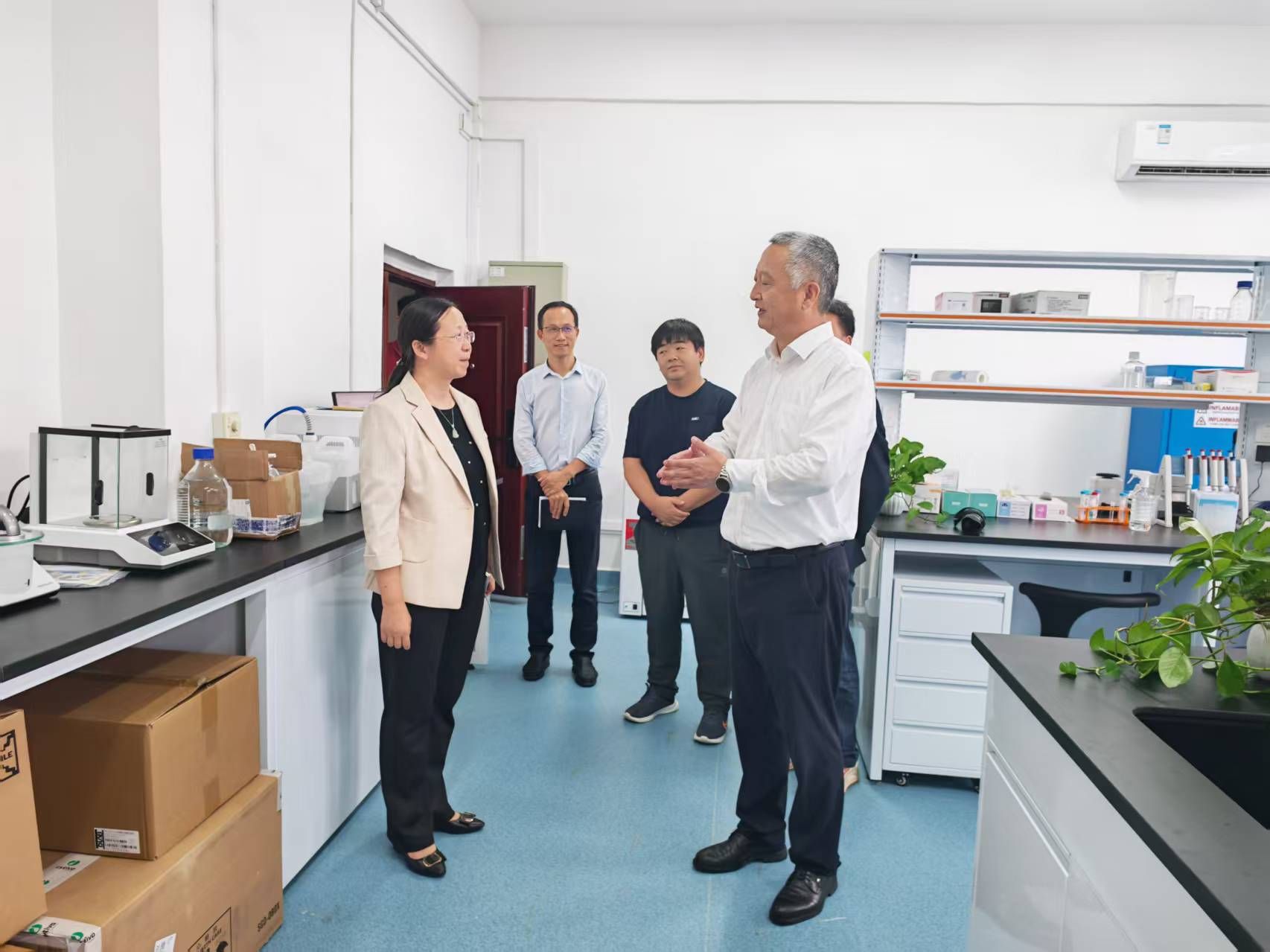李湖书记先后走进免疫调控与成像实验室、成体干细胞与器官修复实验室、病媒生物学实验室、结构生物学实验室、环境应激与健康稳态实验室,察看了实验室的科研环境、设备运行及安全管理情况,并与团队负责人进行了深入交流,详细了解青年人才发展、创新成果以及工作设想。