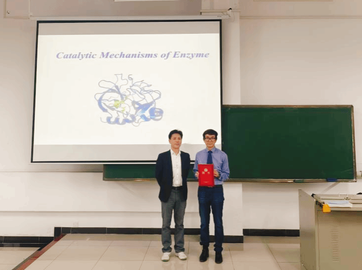 2025年11月29日至12月3日,南京大学杨荣武教授应邀为2024级生物科学、生物技术专业本科生进行了为期五天的集中授课,并作“如何学好生物化学”专题讲座。郑继平副经理向杨荣武教授颁发了“bevictor1946韦德官网冬季小学期外聘专家”聘书。