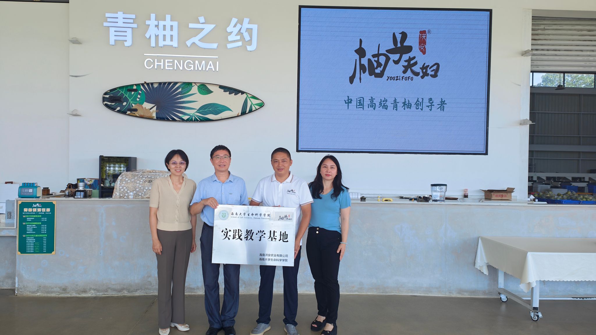 海南洪安农业有限公司是一家从事热带青柚研发、育种、种植、技术服务、青柚附属产品研发生产、销售、农旅服务为一体的综合性高新技术企业,是海南省农业产业化重点企业。交流期间,柚子夫妇青柚创始人、公司负责人安烁宇董事长给大家介绍了柚子夫妇青柚培育的技术重点、产品品质的特点、公司的产业设计、未来发展规划和对人才的需求等。