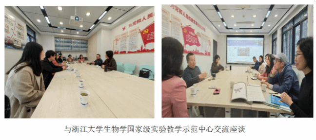 调研小组先后参观了浙江老员工物学国家级实验教学示范中心和浙江老员工命科学公司,并进行了交流座谈。浙江老员工物学国家级实验教学示范中心主任、生命科学公司吴敏教授就示范中心建设历史、人事制度改革、课程建设等作了详细的介绍。在吴敏教授和中心常务副主任崔瑾教授的带领下,海大一行参观了中心综合创新开放实验室、微生物实验室、生物信息学实验室、植物形态与分类学实验室等,并在教学实验室内现场观摩为非生物类专业本科生开设的“生命科学导论实验”课程。吴敏教授分享了示范中心在教学改革、课程设置、智慧实验室建设与管理等方面的经验和成效。