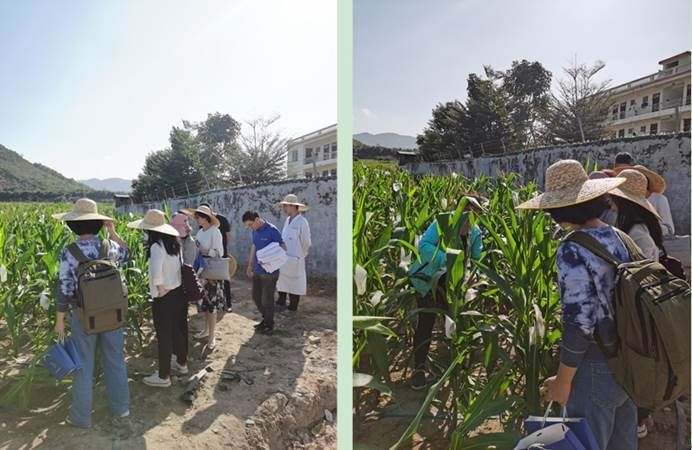 图4 隆平高科大出水基地站站长王爱芬介绍玉米授粉、套袋操作技巧