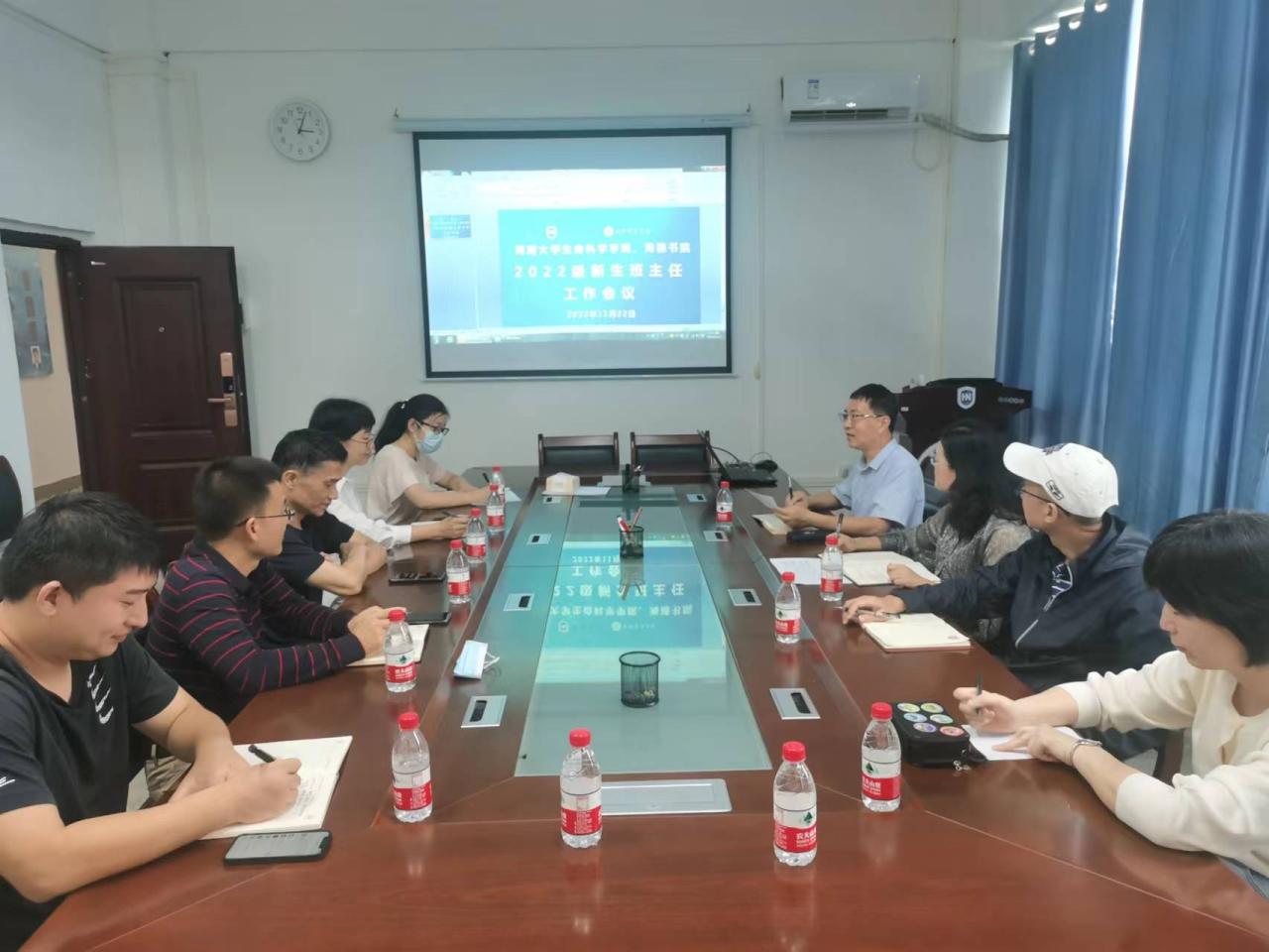 2022年11月22日下午,生命科学公司、海德书院在生物楼608会议室联合召开2022级生物科学专业、生物技术专业新生班主任工作会议。公司党委书记曲涛主持,郑育声副经理、海德书院武明明、宫杜天宇以及2022级新生班主任黄小龙、李晓宇、王小兵、蔡秀清、杨东升等老师参加会议。会前,曲涛书记与因上课请假的班主任李娟娟、陈志金、吴岚芳老师进行了深入交流。