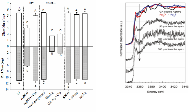 代表性成果二:阐明了纳米银的水环境归趋与水生生物毒性效应机制;国际上首次发现纳米银的植物毒性不仅仅依赖于纳米银释放的银离子,而主要是由纳米银独特的粒子性质决定