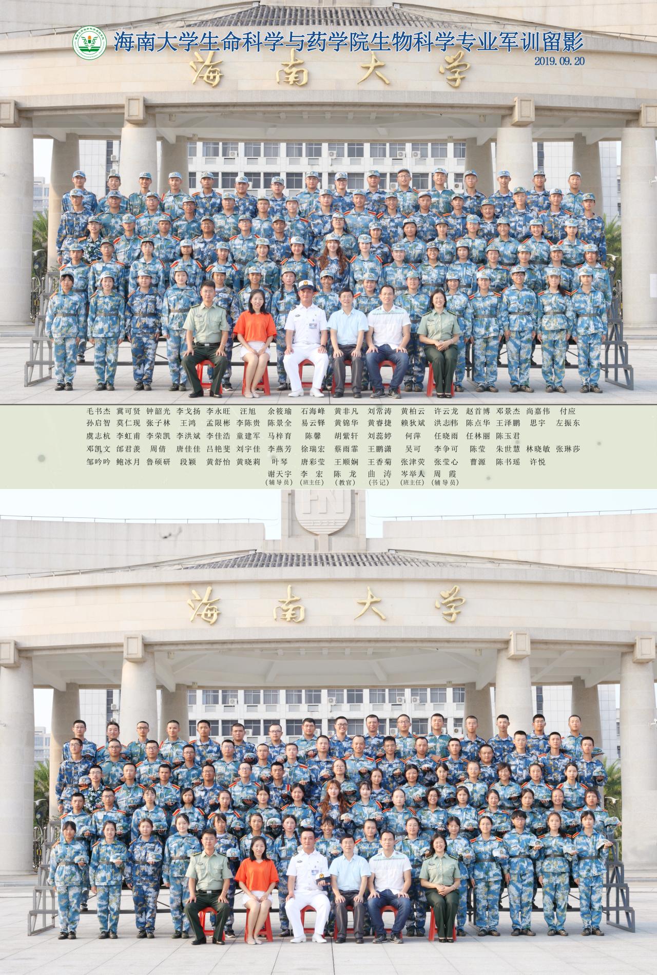 2019级生物科学专业军训合影