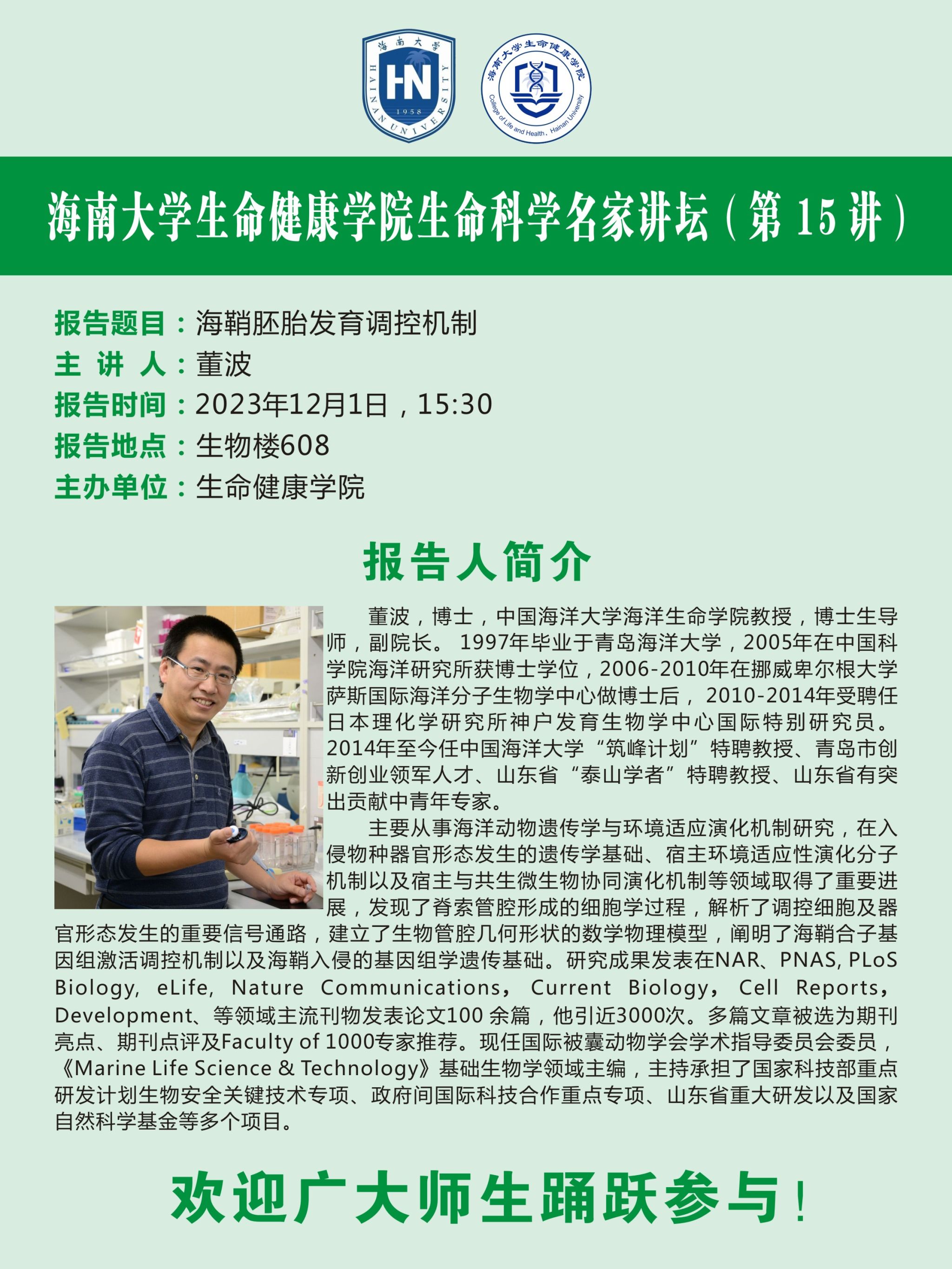 bevictor1946韦德官网生命科学名家讲坛(第 15 讲)