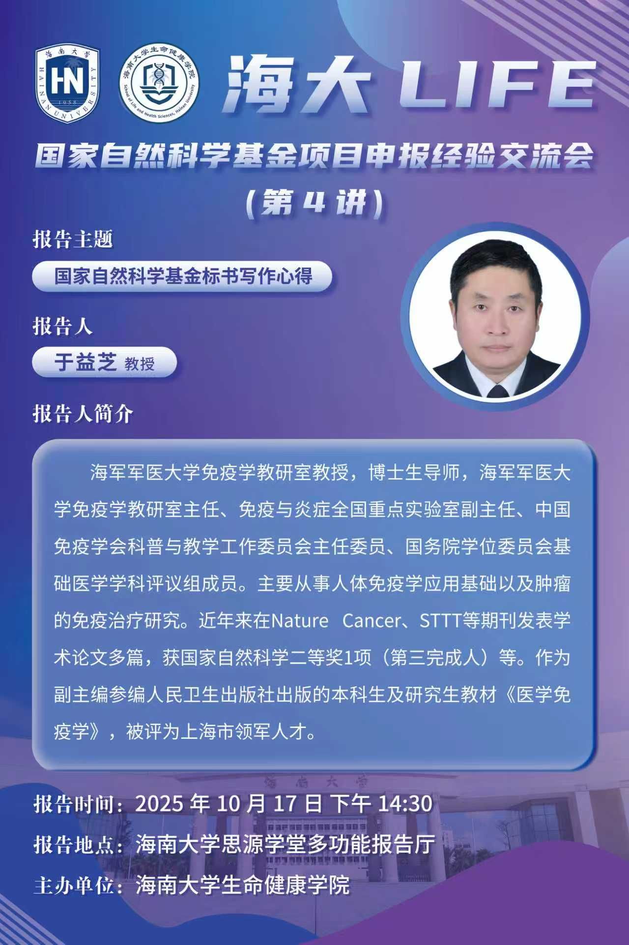 海大LIFE-国家自然科学基金项目申报经验交流会(第4讲)| 于益芝:国家自然科学基金标书写作心得
